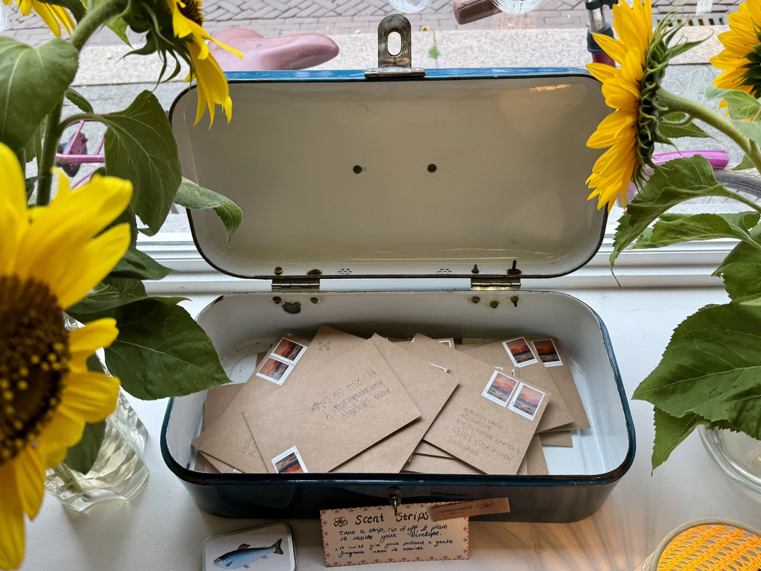 ❋ Venue and setupWe provide: postcards with our nature photographs, pens, envelopes, postage stamps for mailing, and materials to decorate the envelopes, such as wax seals, small stickers, and scented strips.